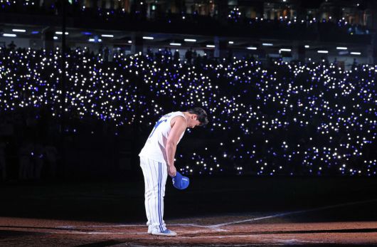 마지막은 오승환의 부친 오병옥 씨였다. 오승환이 과거 부상 등으로 프로에 지명받지 못했을 때 속마음 등을 털어놓았다. 아들을 향한 끝없는 사랑도 전했다. 오승환은 뜨거운 눈물을 쏟았다. 아내 김지혜 씨의 영상 편지까지 끝난 뒤 오승환은 마운드에서 가족들과 기념 촬영에 임했다.