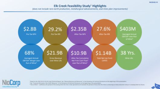 니오코프의 엘크크릭 프로젝트 경제성 평가 지표 [자료=니오코프] |