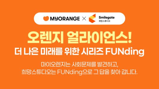 임팩트테크 스타트업 마이오렌지는 스마일게이트 희망스튜디오와 손잡고 사회공헌 시너지를 강화하기 위한 ‘오렌지 얼라이언스(Orange Alliance)’를 구축했다고 1일 밝혔다.