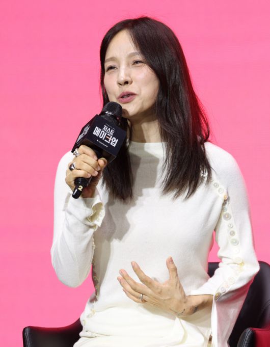 가수 이효리가 1일 서울 광진구 풀만 앰배서더 서울이스트폴에서 진행한 쿠팡플레이 새 예능 ‘저스트 메이크업’ 제작발표회에서 자신감을 전했다.