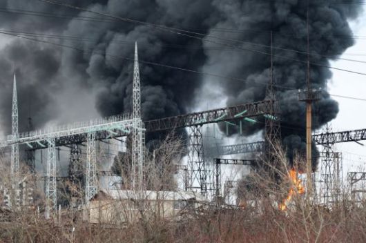 지난해 1월 22일 우크라이나군이 러시아가 점령한 도네츠크인민공화국 마키이우카 변전소를 공격해 화염과 함께 검은 연기가 치솟고 있다. 타스= 연합뉴스 |