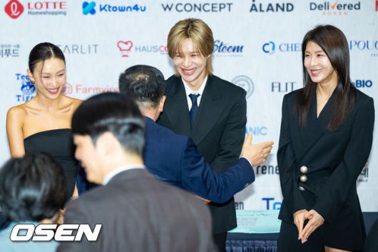 [OSEN=박준형 기자] 1일 오후 서울 서초구 염곡동 KOTRA 본사 국제회의장에서 2025 뉴욕 한류박람회 홍보대사 위촉식이 진행됐다. 이날 행사에는 홍보대사 배우 하지원, 샤이니 태민, 마마무 화사가 참석했다. 화사와 태민, 하지원이 강경성 사장과 인사하며 미소 짓고 있다 2025.10.01 / soul1014@osen.co.kr