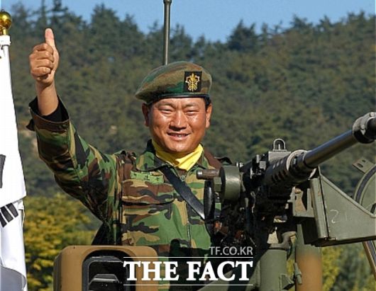 '탱크' 최경주가 지난 2007년 10월 수도방위사령부를 방문해 K-1전차에 올라 포즈를 취하고 있는 모습./뉴시스 |