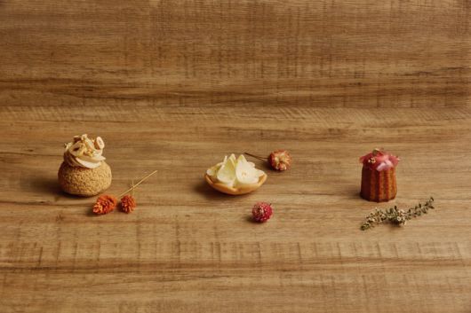 스위트 셀렉션은 바닐라 크림과 헤이즐넛이 어우러진 밤 슈, 오렌지와 라임 제스트로 상큼함을 살린 시트러스 타르트, 식용 금으로 장식한 라즈베리 피낭시에, 밤 크림과 말차 크림을 층층이 올린 몽블랑 말차 파르페로 구성했다.