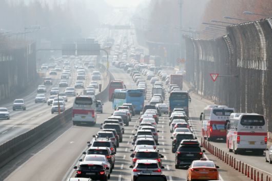 추석 연휴 기간 교통사고 일평균 환자 수가 1.3배까지 증가하는 것으로 나타났다. 사진은 귀성차량이 몰리며 정체된 고속도로의 모습이다. 연합뉴스 |