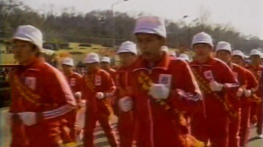 1992년 김정일 생일 50주년을 즈음해 열린 이어달리기 행사 장면입니다.