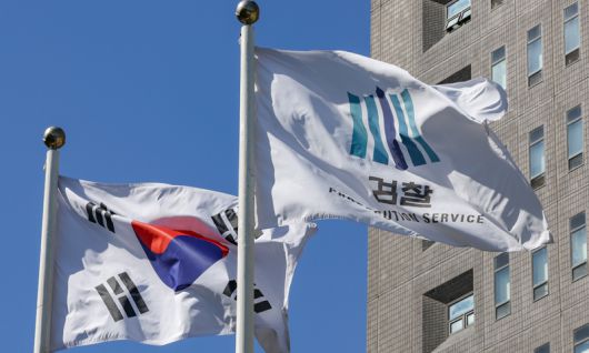 서울 서초구 서울중앙지검 앞에 태극기와 검찰기가 바람에 휘날리고 있다. 최상수 기자 |