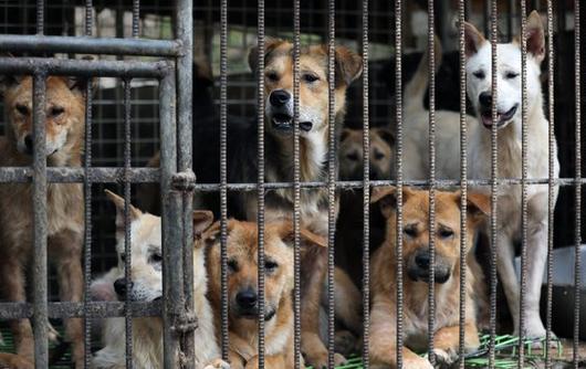 2018년 4월 10일 오후 경기도 남양주시의 한 식용견 농장에서 도살을 앞둔 개들이 구조의 손길을 기다리고 있다. 뉴스1 |