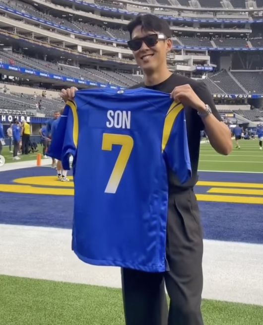 소파이 스타디움에서 손흥민은 램스의 와이드리시버 푸카 나쿠아와 직접 만나 인사를 나눴다. 두 선수는 유니폼을 교환하며 친분을 쌓았다. 손흥민은 ‘SON’과 등번호 7번이 새겨진 램스 유니폼을 선물로 받았고, 이를 입은 채 특유의 ‘찰칵 세리머니’를 선보였다.
