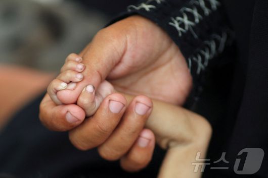 8월 5일(현지시간) 팔레스타인 가자지구 가자시티에서 한 어머니가 영양실조로 쇠약해진 생후 5개월 자녀의 손을 잡고 있다. 2025.08.05. ⓒ 로이터=뉴스1 ⓒ News1 윤다정 기자 |