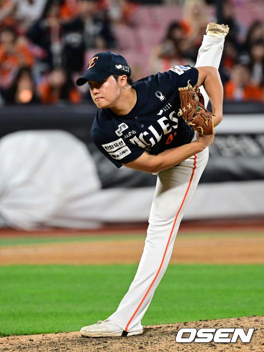 연장 10회말 마운드에 오른 한화 정우주가 역투하고 있다. 2025.10.03 /cej@osen.co.kr