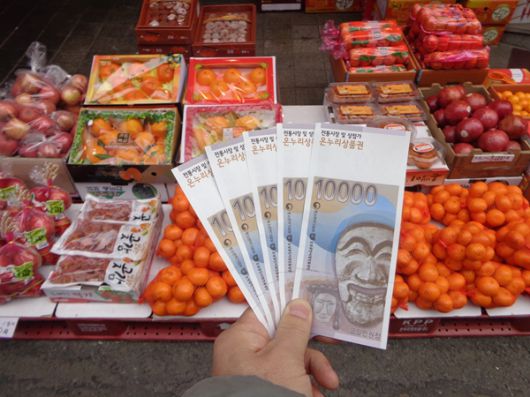 전통시장에서 국산 농축수산물을 구매하면 구매금액의 최대 30%를 1인당 2만원 한도 내에서 온누리상품권으로 즉시 돌려받을 수 있다.