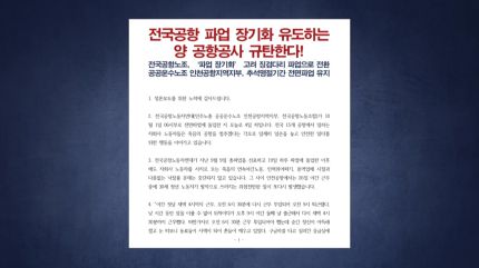 전국공항노동자연대는 오늘(4일) 보도자료를 내고, 대통령실이 한국공항공사와 면담하는 14일까지 파업을 임시 중단한다고 밝혔습니다.