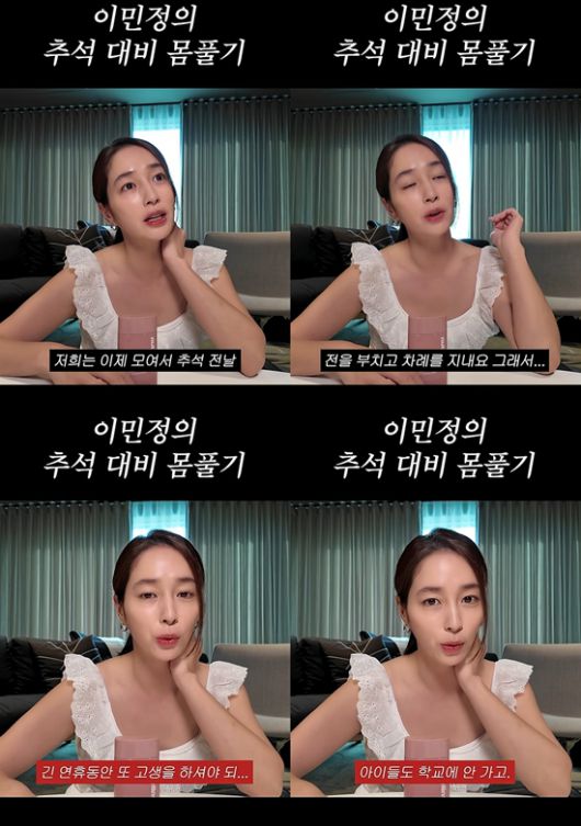 4일 유튜브 채널 '이민정 MJ'에는 '쉬는 게 쉬는 게 아닌 추석'이라는 제목의 짧은 영상이 업로드됐다.