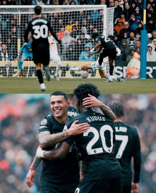 1-1로 전반을 마친 토트넘은 후반 다시 흐름을 잡았다. 후반 13분 오른쪽 측면에서 공을 잡은 쿠두스가 중앙으로 치고 들어가며 왼발 슈팅을 시도했고, 공은 그대로 골문 구석으로 빨려 들어갔다. 토트넘 이적 후 기록한 쿠두스의 첫 골이다.