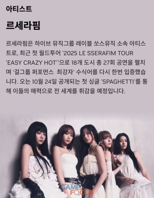 최근 대통령 직속 대중문화교류위원회 출범식 오프닝 공연자로 나서 주목받은 세계적 인기 KPOP 걸그룹 르세라핌(LE SSERAFIM)의 특별 공연도 예고되어 눈길을 끈다. 르세라핌은 24일 신곡을 발표할 예정으로, GGF에서 신곡 라이브 무대를 가질 것으로 예상된다.