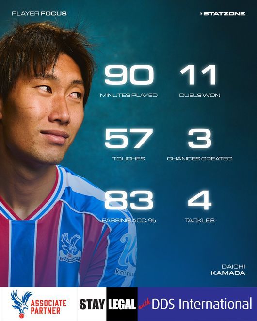이어 팰리스는 "일본 국가대표 가마다는 9월에 열린 팰리스의 프리미어리그 3경기에서 모두 풀타임을 소화했다. 그는 올 시즌 팰리스가 무패 행진을 달리는 데 중요한 역할을 했다"라고 전했다.