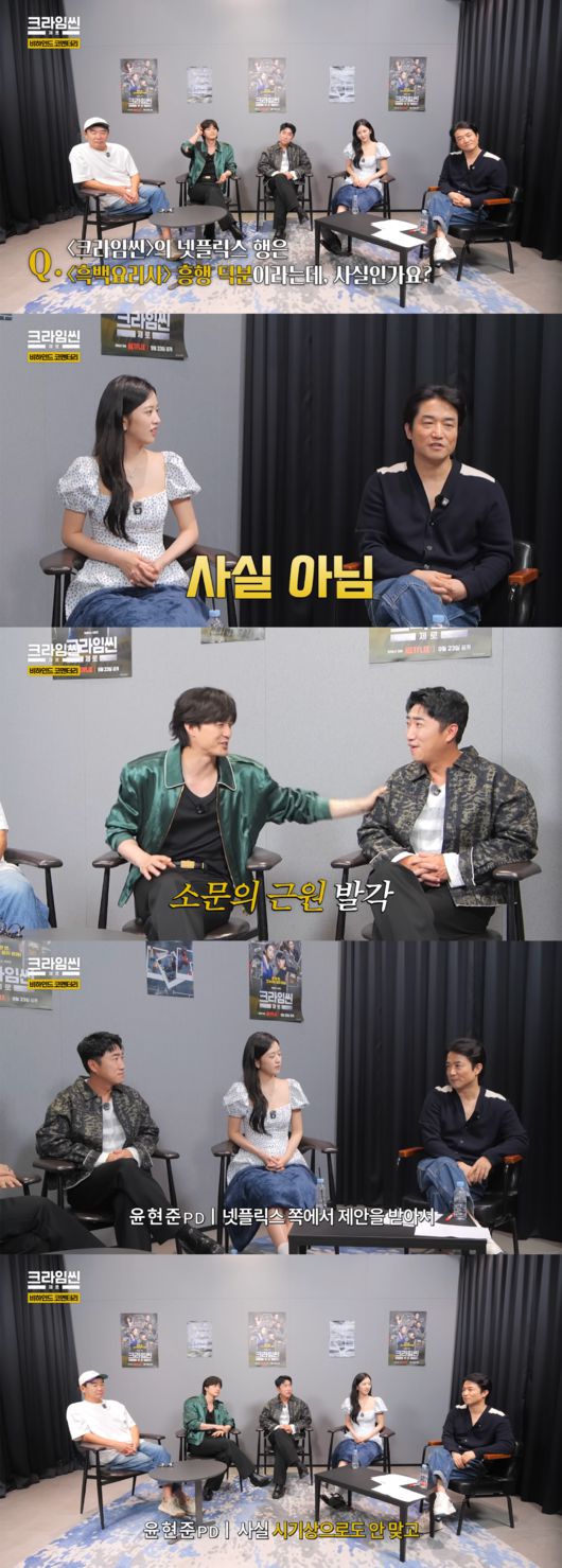 윤현준 PD는 “‘크라임씬’ 프로그램은 ‘흑백요리사’ 나오기 전에 넷플릭스 쪽에서 제안을 받아서 ‘그럼 ‘크라임씬’을 제작하자’고 해서 회의에 들어갔다. ‘흑백요리사’ 대박나서 넷플릭스에서 하게 해줬다는 말은 사실 시기상으로도 안 맞다”고 밝혔다.