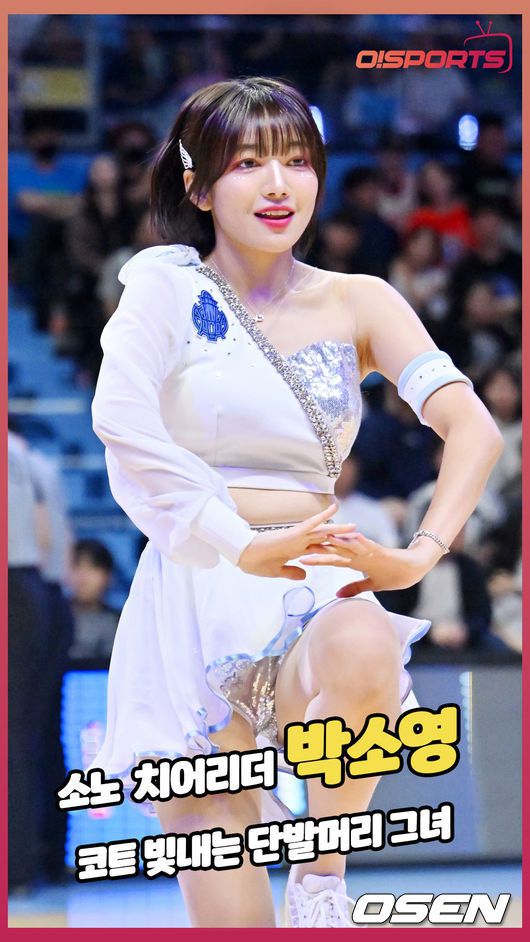 [OSEN=고양, 민경훈 기자] 5일 오후 고양 소노아레나에서 2025-2026 LG전자 프로농구 고양 소노와 울산 현대모비스의의 경기가 열렸다. 2쿼터 소노 박소영 치어리더가 코트 위에서 공연을 펼치고 있다 2025.10.05 /rumi@osen.co.kr