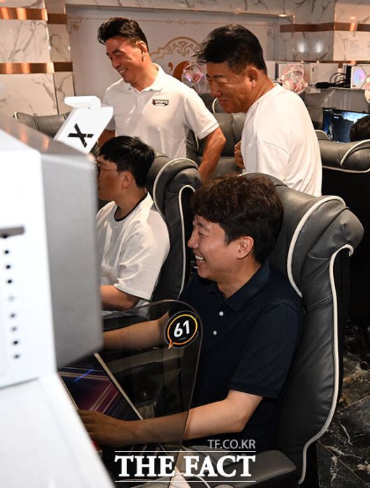 [더팩트ㅣ임영무 기자] 이준석 개혁신당 대표와 김재섭 국민의힘 의원이 추석 명절을 하루 앞둔 5일 오후 서울 영등포구의 한 PC방에서 열린 한가위 기념 스타크래프트 게임대회 '스타 정치인'에 참가해 대결을 펼치고 있다.
