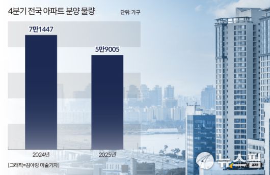 6일 업계에 따르면 올해 4분기 전국 아파트 분양 물량은 5만9005가구로 집계됐다. 이는 전년 동기 분양 물량 7만1447가구보다 약 17.4%(1만2442가구) 감소한 수치다.