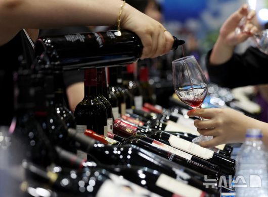 [서울=뉴시스] 김진아 기자 = 서울 강남구 코엑스에서 열린 2025 서울국제주류&와인박람회에서 관람객이 와인을 시음하고 있다. 2025.06.26. bluesoda@newsis.com |