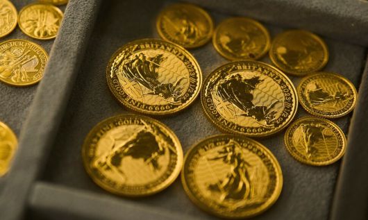 2025년 4월30일 미국 로스앤젤레스 세인트 빈센트 주얼리 센터의 한 매장에 금화 컬렉션이 전시돼 있다. 로스앤젤레스/AP 연합뉴스 |