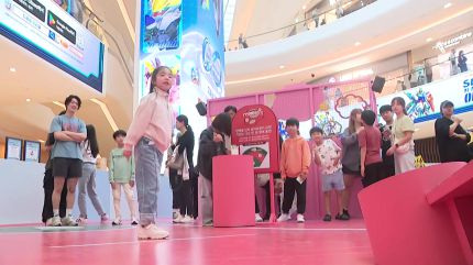 콩주머니 던지기, 장애물을 튕겨 바구니에 넣기 등 놀이에서 점수를 딴 뒤 과자와 상품을 받을 수 있는 행사가 진행되고 있습니다.