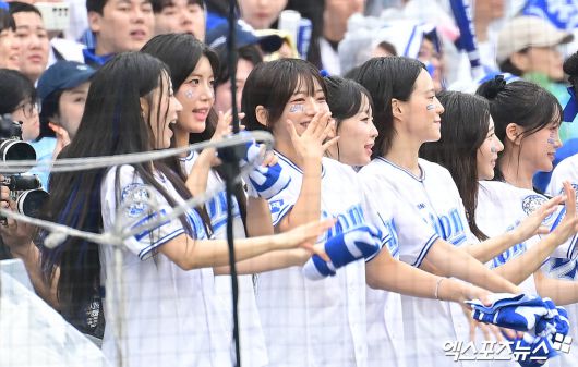 (엑스포츠뉴스 대구, 박지영 기자) 6일 오후 대구삼성라이온즈파크에서 열린 '2025 신한 SOL Bank KBO 포스트시즌' NC 다이노스와 삼성 라이온즈의 와일드카드 1차전 경기, 삼성 치어리더들이 열띤 응원을 펼치고 있다.박지영 기자 jypark@xportsnews.com