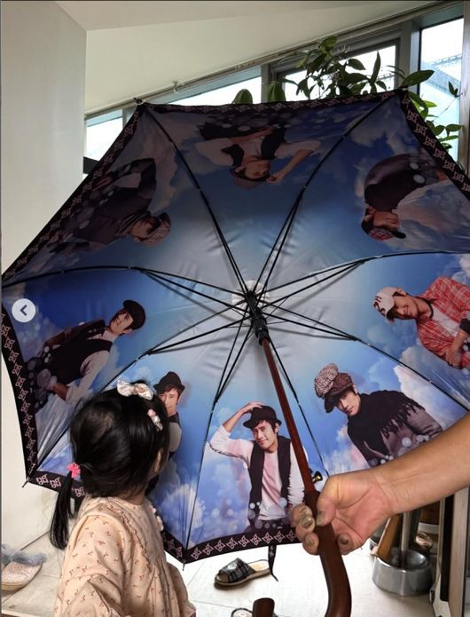 특히 이민정이 설명한 대로 할머니가 펼쳐준 우산도 눈길을 끌었다. 할머니 손에 들린 우산 안은 이병헌의 사진이 가득 붙어 있었기 때문. 팬들을 위한 이병헌의 굿즈로 서이는 우산 속 아빠의 얼굴을 집중해서 바라보고 있었다.