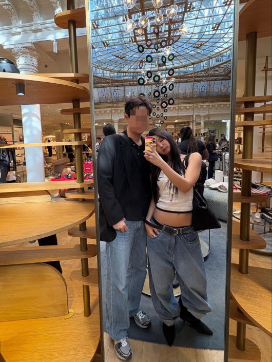 매니저로 보이는 한 남성과 쇼핑 중 다정하게 거울 셀카를 촬영하는 모습도 눈길을 끈다.