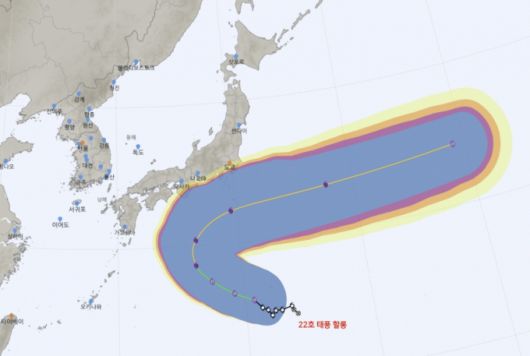 6일 기상청에 따르면 이날 오후 4시 발표 기준 태풍 '할롱'은 일본 열도 해상을 따라 북동진할 전망이다.