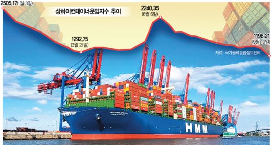 컨테이너선 운임은 올 들어 줄곧 하락세를 면치 못하고 있다. 올 2분기 평균 SCFI는 지난해 같은 기간보다 37.4% 하락한 1645.4를 기록했다. 직전인 1분기와 비교했을 때도 6.6% 하락한 수준이다. 마찬가지로 CCFI 역시 2분기 1162.4로 같은 기간 각각 19.2%, 13.9% 하락한 것으로 나타났다.