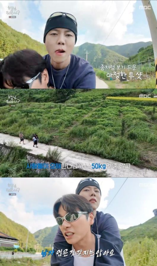 주우재는 “이경이가 짱이다. 이거 아무나 못하는 거다”라면서 고마워했고, 이이경은 “좋잖아. 언제 이런 명분으로 업어보겠아”라면서 조용히 걸었다. 특히 주우재는 이이경에게 “그런데 안 업은 것 같아?”라고 묻기도 해 눈길을 끌었다.