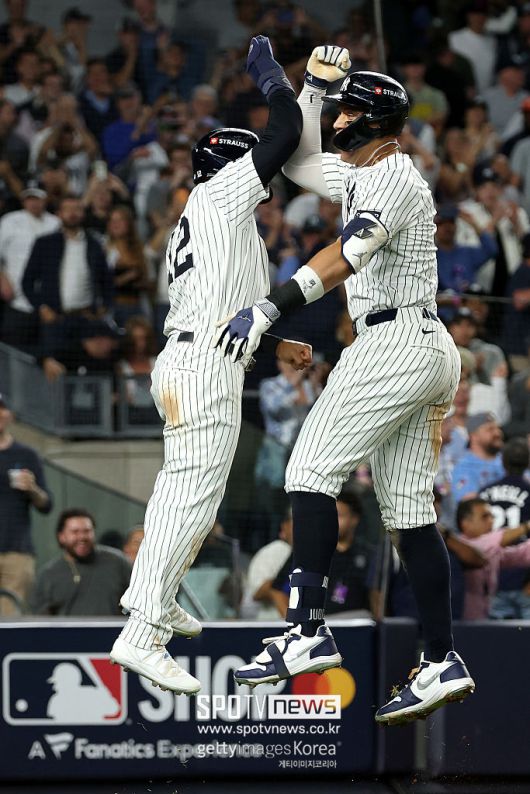 저지의 홈런으로 3-6이었던 점수가 6-6이 됐다. 1-6에서 시작된 추격의 완성이었다. 8일(한국시간) 미국 뉴욕주 브롱스 양키스타디움에서 열린 2025 메이저리그 아메리칸리그 디비전시리즈 토론토 블루제이스와 3차전에서 양키스는 저지의 동점 쓰리런과 재즈 치좀 주니어의 역전 홈런에 힘입어 9-6으로 역전승을 거뒀다.