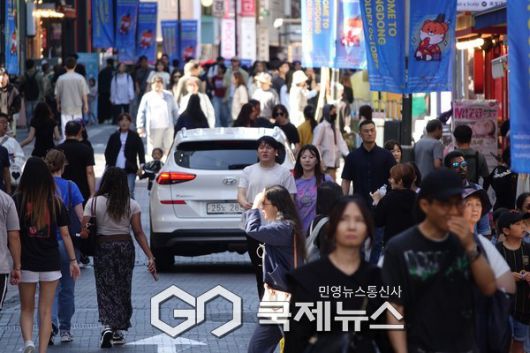 (서울=국제뉴스) 민웅기 기자 = 8일 오후 서울 중구 명동거리가 추석 황금연휴를 즐기려는 시민들로 북적이고 있다.