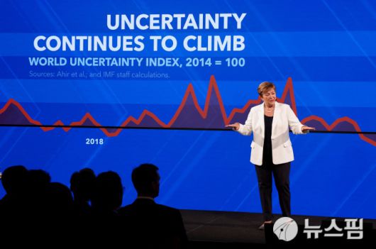 [워싱턴=뉴스핌] 박정우 특파원 = 올 해 미국의 고율 관세 부과로 촉발된 전세계 무역 갈등 분위기 속에서도 세계 경제가 우려와 달리 잘 버티고 있지만 성장세는 다소 둔화할 것이라고 국제통화기금(IMF)이 예상했다. 예상과 달리 각국이 맞보복으로 무역전쟁의 악순환에 빠지지 않았고 기업들도 높은 관세의 영향을 완화할 방법을 찾았지만 세계 경제의 성장을 견인해온 개방성은 큰 타격을 입었다는 것이다.