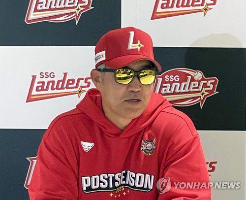 (인천=연합뉴스) 이대호 기자 = 이숭용 SSG 감독이 9일 인천 SSG랜더스필드에서 삼성 라이온즈와 준PO 1차전을 앞두고 인터뷰를 하고 있다. 2025.10.9