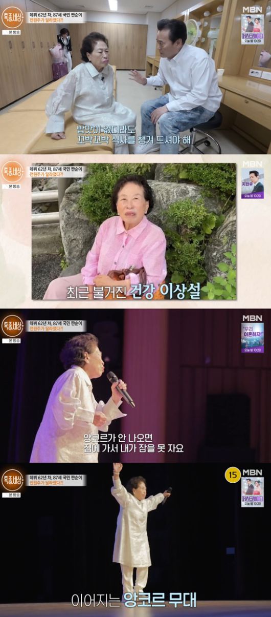 전원주는 정식 가수가 아님에도 무대 위에서 춤과 노래를 즐기며 열정적인 모습을 보였다. 그는 “90이 내일모레인데 나이는 숫자에 불과하다. 지금도 멋진 남자가 오면 가슴이 두근거린다”며 관객들에게 농담을 건넸다.