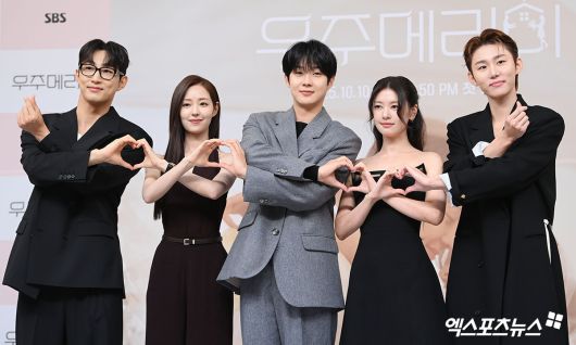 (엑스포츠뉴스 고아라 기자) 10일 오후 서울 양천구 목동 SBS에서 새 금토드라마 '우주메리미' 제작발표회가 열렸다. 배우 배나라, 신슬기, 최우식, 정소민, 서범준이 제작발표회에 참석해 포토타임을 갖고 있다.고아라 기자 iknow@xportsnews.com