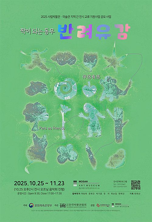 강화 더리미미술관(관장 유리)이 ‘2025년 사립 박물관‧미술관 지역 간 전시 교류 지원사업’ 선정에 따라 충남 보령시에 위치한 모산조형미술관에서 오는 25일부터 내달 23일까지 교류 전시 ‘반려유감(伴侶有感) : 짝이 되는 동무(Pets as friends)’를 개최한다고 밝혔다.