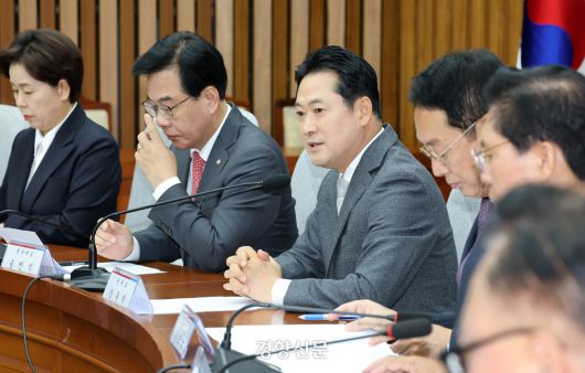 장동혁 국민의힘 대표(왼쪽에서 세 번째)가 10일 국회에서 열린 반도체·인공지능(AI) 첨단산업특별위원회 임명장 수여식 및 제1차 전체회의에서 발언하고 있다. 박민규 선임기자 |