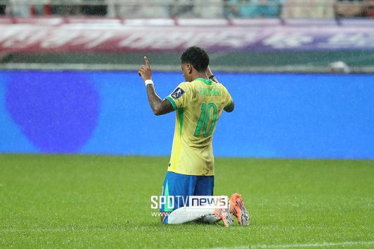 브라질이 폭격을 시작했다. 2분 뒤 또다시 브라질이 압박으로 한국의 볼을 끊어냈다. 곧바로 카세미루가 비니시우스에게 패스한 뒤, 측면에 홀로 있던 호드리구에게 연결했다. 호드리구는 이 찬스를 놓치지 않고 득점에 성공했다. 한순간에 얼어붙은 서울월드컵경기장이었다.