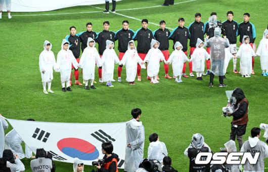 경기에 앞서 한국 선수들이 애국가를 부르고 있다. 2025.10.10 /sunday@osen.co.kr