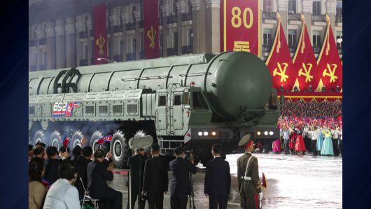 [속보] 북한 열병식에 새 ICBM 화성-20형 등장…"최강 핵전략무기체계"