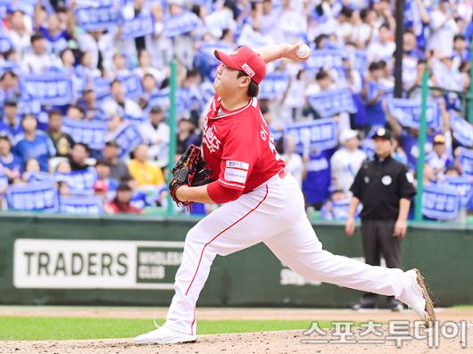 [인천=스포츠투데이 권광일 기자] 2025 신한은행 SOL Bank KBO리그 포스트시즌 준플레이오프 2차전 삼성 라이온즈와 SSG 랜더스의 경기가 11일 인천SSG 랜더스필드에서 열렸다. SSG 이로운이 4회초 구원 등판해 역투하고 있다. 2025.10.11. [스포츠투데이 권광일 기자 sports@stoo.com]