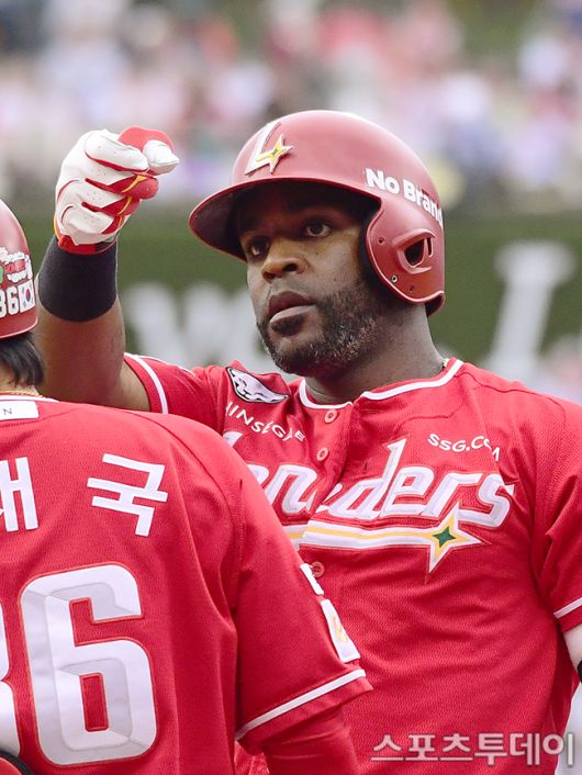 [인천=스포츠투데이 권광일 기자] 2025 신한은행 SOL Bank KBO리그 포스트시즌 준플레이오프 2차전 삼성 라이온즈와 SSG 랜더스의 경기가 11일 인천SSG 랜더스필드에서 열렸다. SSG 에레디아가 5회말 2사3루에서 1타점 안타를 치고 있다. 2025.10.11. [스포츠투데이 권광일 기자 sports@stoo.com]