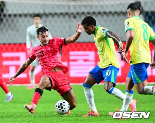 이날 세계적 명장 카를로 안첼로티 감독이 이끄는 브라질은 비니시우스 주니오르, 호드리구, 마테우스 쿠냐, 카세미루 등 최정예 멤버를 모두 출격시키면서 한 수 위의 전력을 제대로 보여줬다. 홍명보호는 상대의 뛰어난 개인기 앞에 준비한 스리백과 중원의 빈 틈이 공략당하면서 본선 무대를 앞두고 조직력 강화라는 또 하나의 숙제를 안게 됐다.