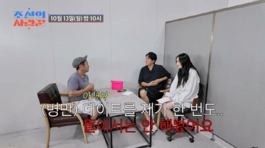 13일 방송될 '조선의 사랑꾼' 선공개 영상에서는 김병만이 배우 신현준과 배우희에게 청첩장을 전달하면서 "제가 아내와 데이트를 한 번도...둘이 해본 적이 없다. 항상 후배들이 있었다"고 고민을 토로한다. 그러자 신현준은 "그냥, 별거 없다. 둘이 손잡고 다녀라"라며 김병만의 데이트를 응원했다.