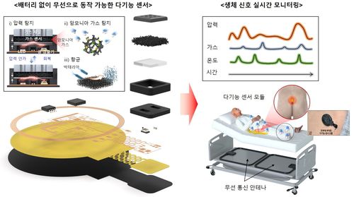 이에 공동 연구팀은 압력·온도·암모니아 등 환자의 다양한 생체가스를 감지하는 무선 센서 플랫폼을 개발했다.
